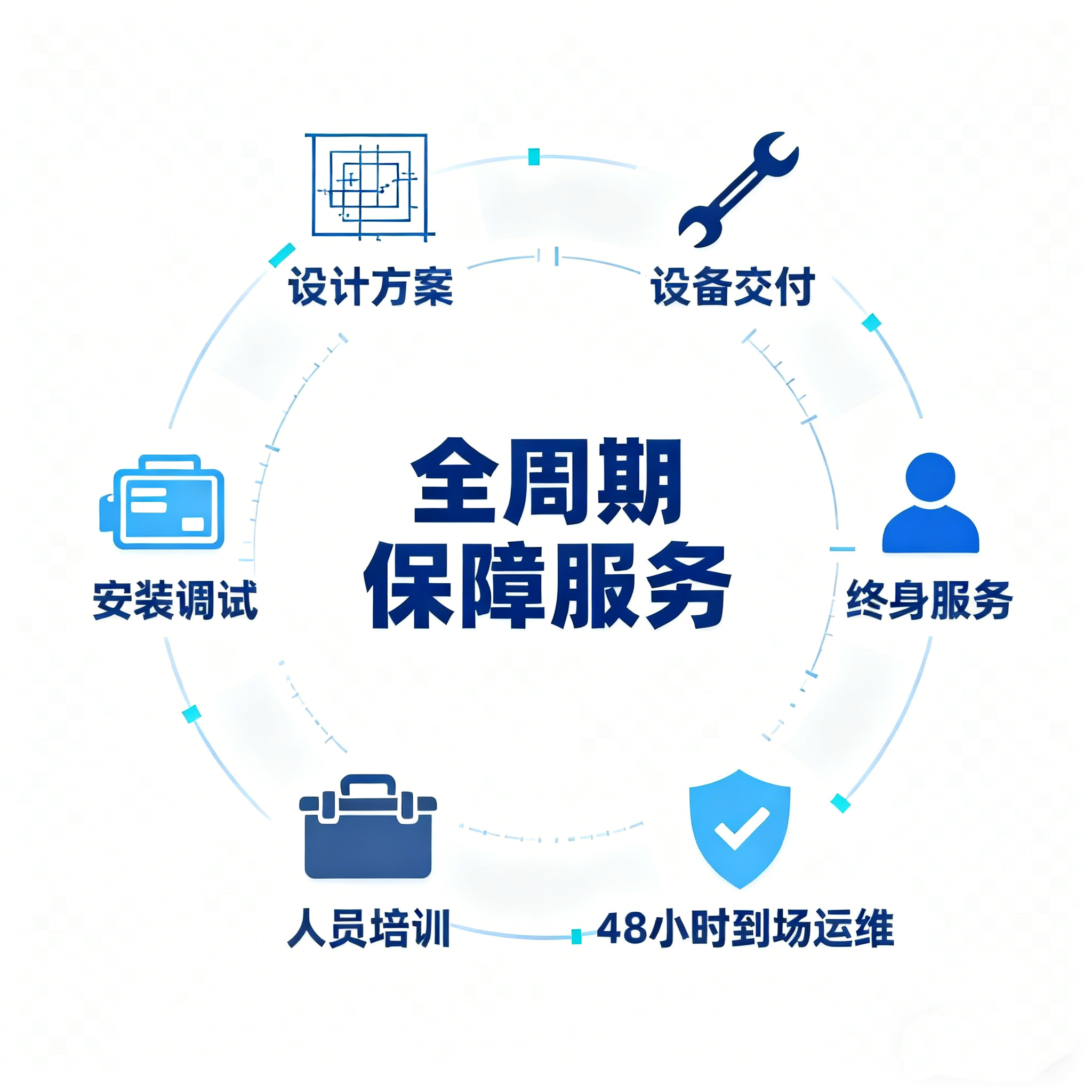 從設(shè)計(jì)方案到設(shè)備交付 全周期保障提供安裝調(diào)試、人員培訓(xùn)、48 小時到場運(yùn)維等終身服務(wù)。